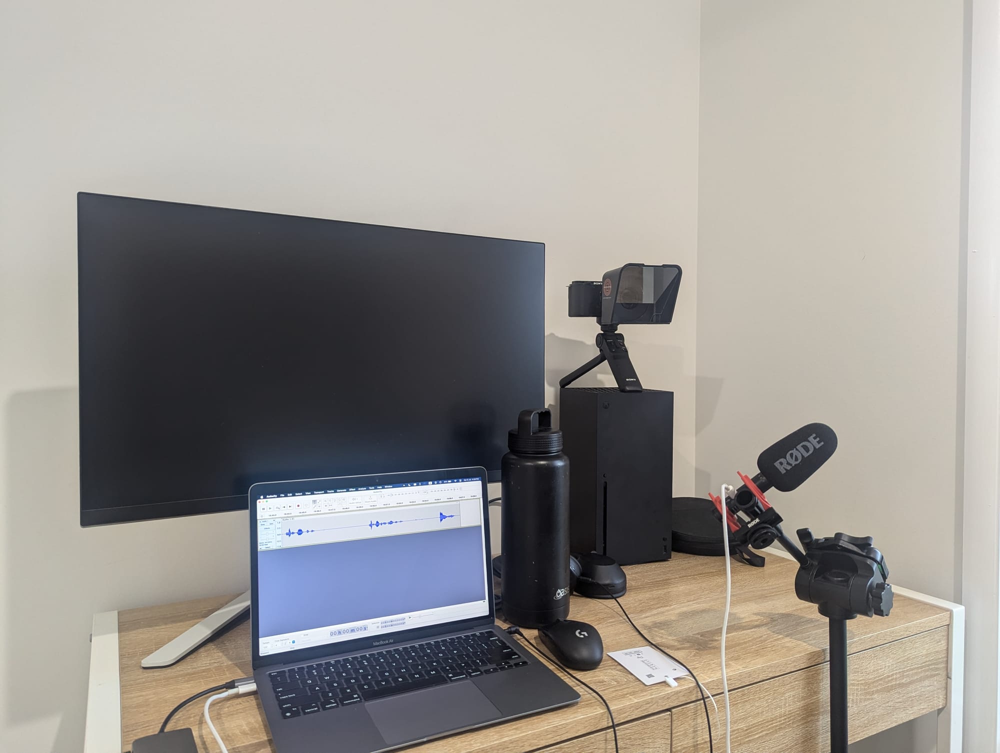 Fun fact, people care about audio > video. That is why I use an external microphone. For better sounding audio, run the external microphone through Audacity on your laptop.