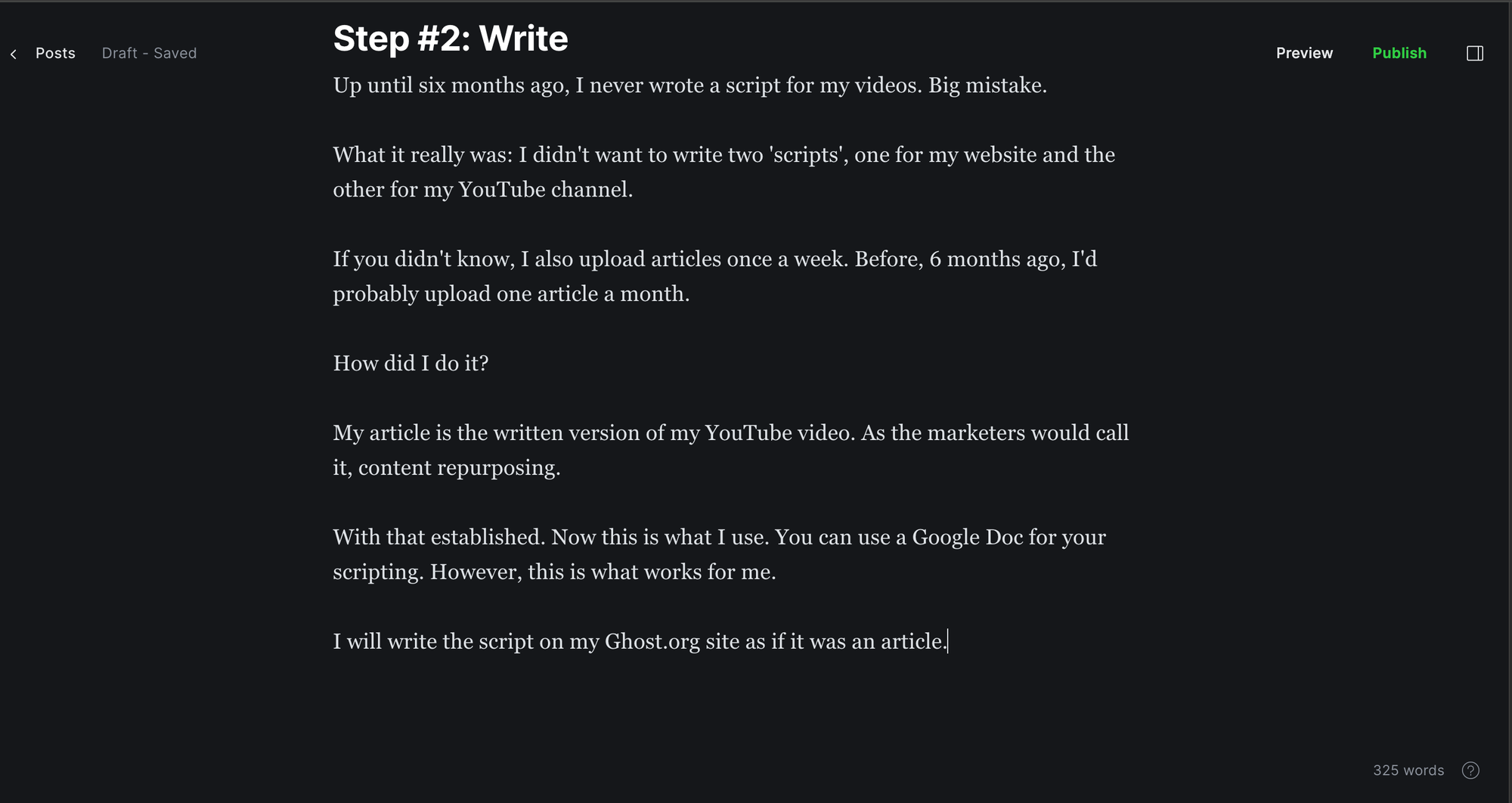 That means, instead of a writing on a Google Doc, I write the article directly on my Ghost.org site.
