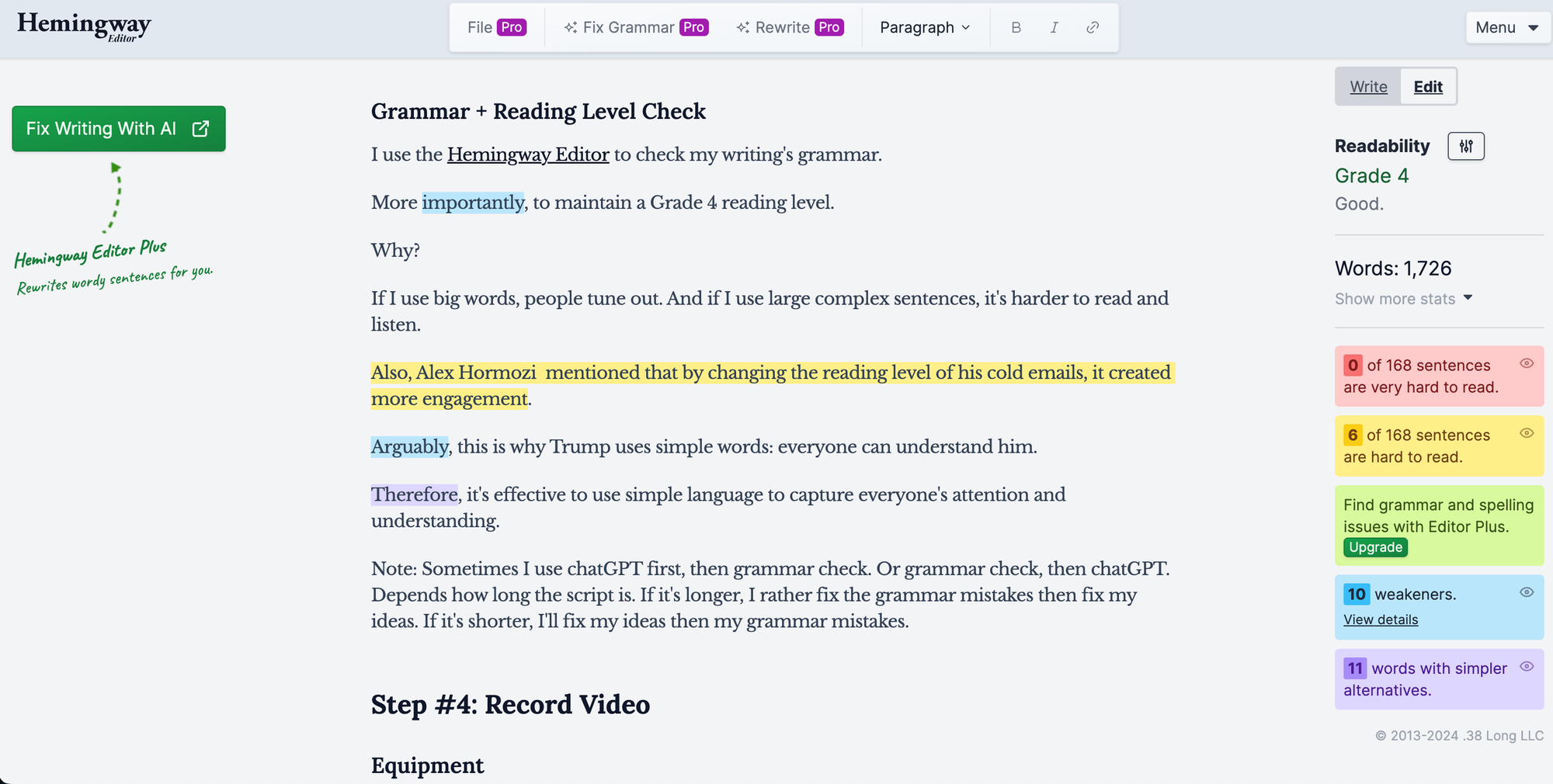 Sometimes I use chatGPT first, then grammar check. Or grammar check, then chatGPT. Depends how long the script is. If it's longer, I rather fix the grammar mistakes then fix my ideas. If it's shorter, I'll fix my ideas then my grammar mistakes.